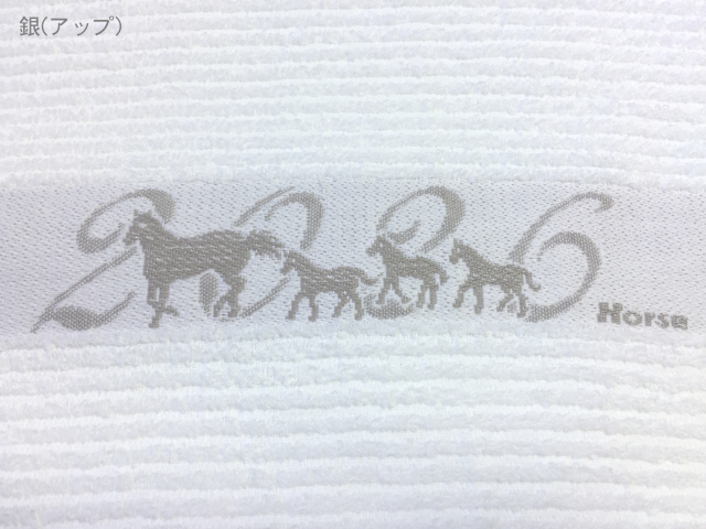 2026年午(うま)年の干支ジャカード織高級タオルはいかがでしょうか。高級感のあるジャカード織タオルは年末年始のご挨拶やご贈答用にぴったり。毎年大人気のシリーズです。お年賀タオルとしてご利用下さい。2柄5色12枚単位