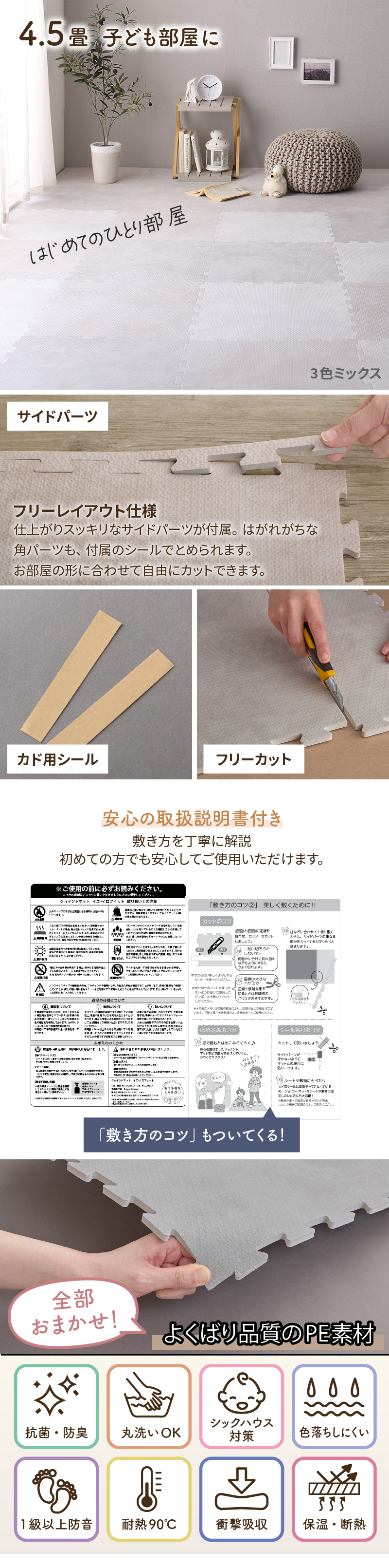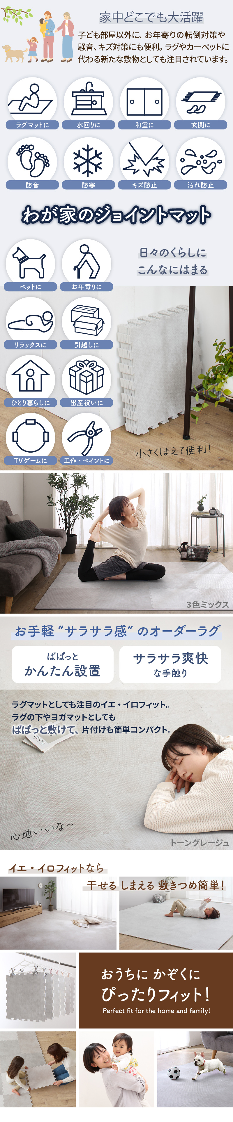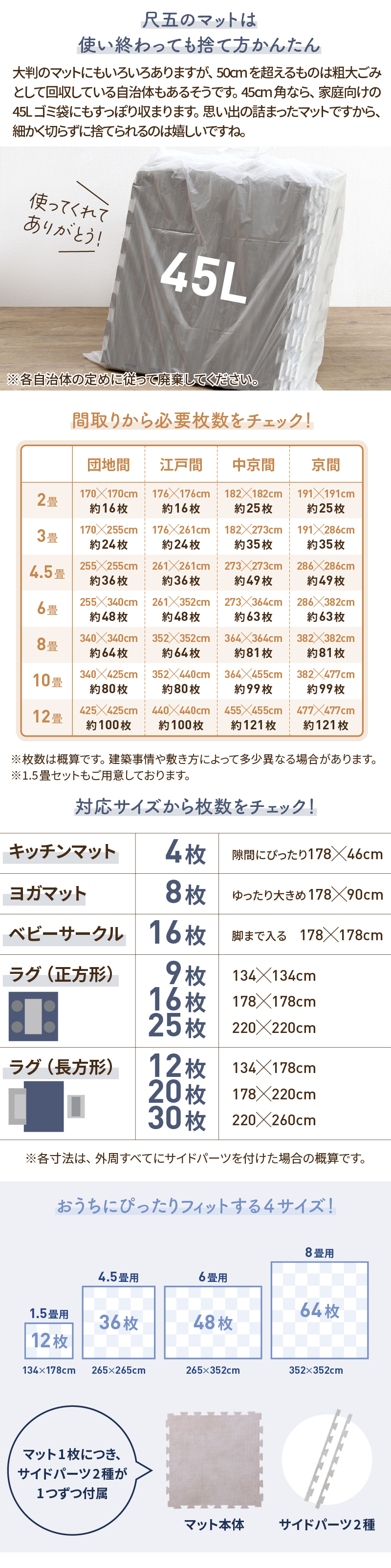ジョイントマット 45cm 8mm 8畳 64枚 大理石調 大判 おしゃれ カーペット ラグ 防音 床暖房対応 抗菌 防臭 洗える