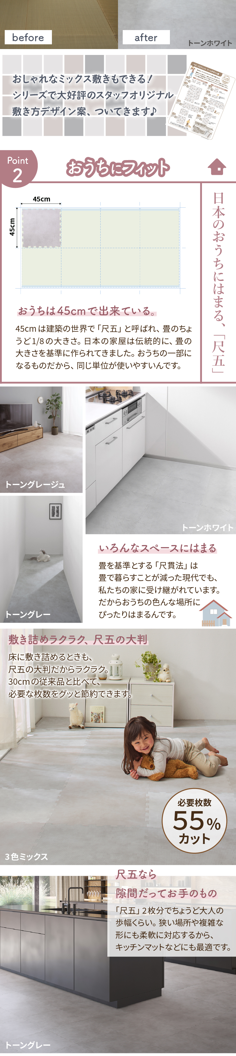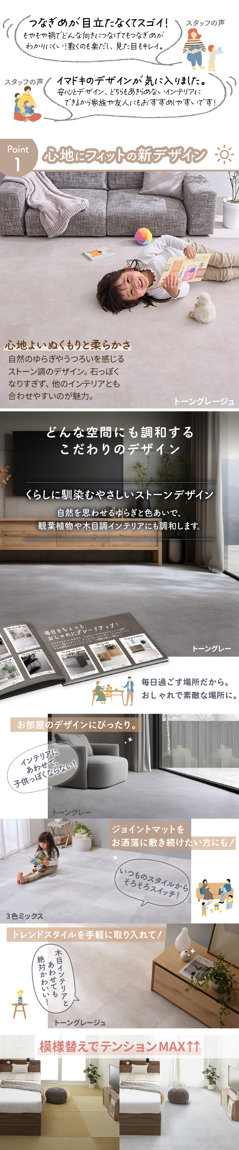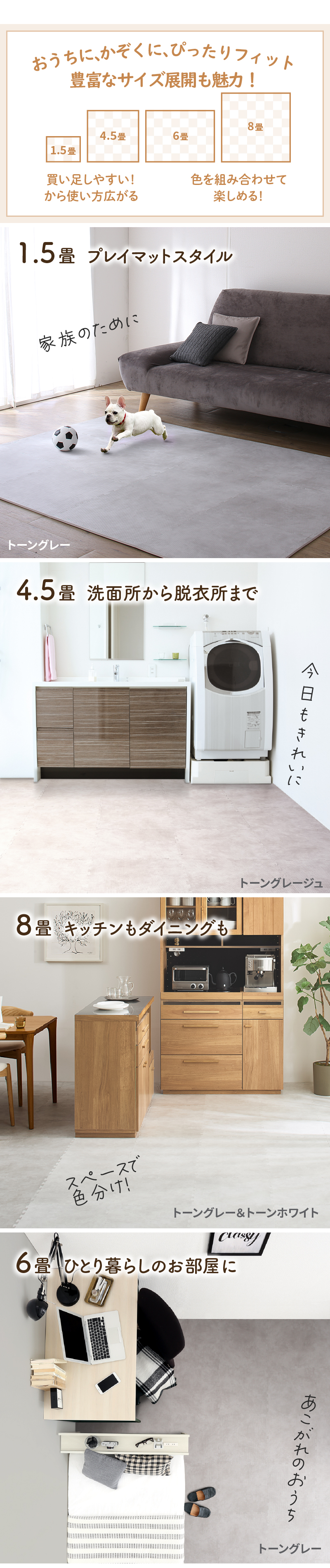ジョイントマット 45cm 8mm 8畳 64枚 大理石調 大判 おしゃれ カーペット ラグ 防音 床暖房対応 抗菌 防臭 洗える